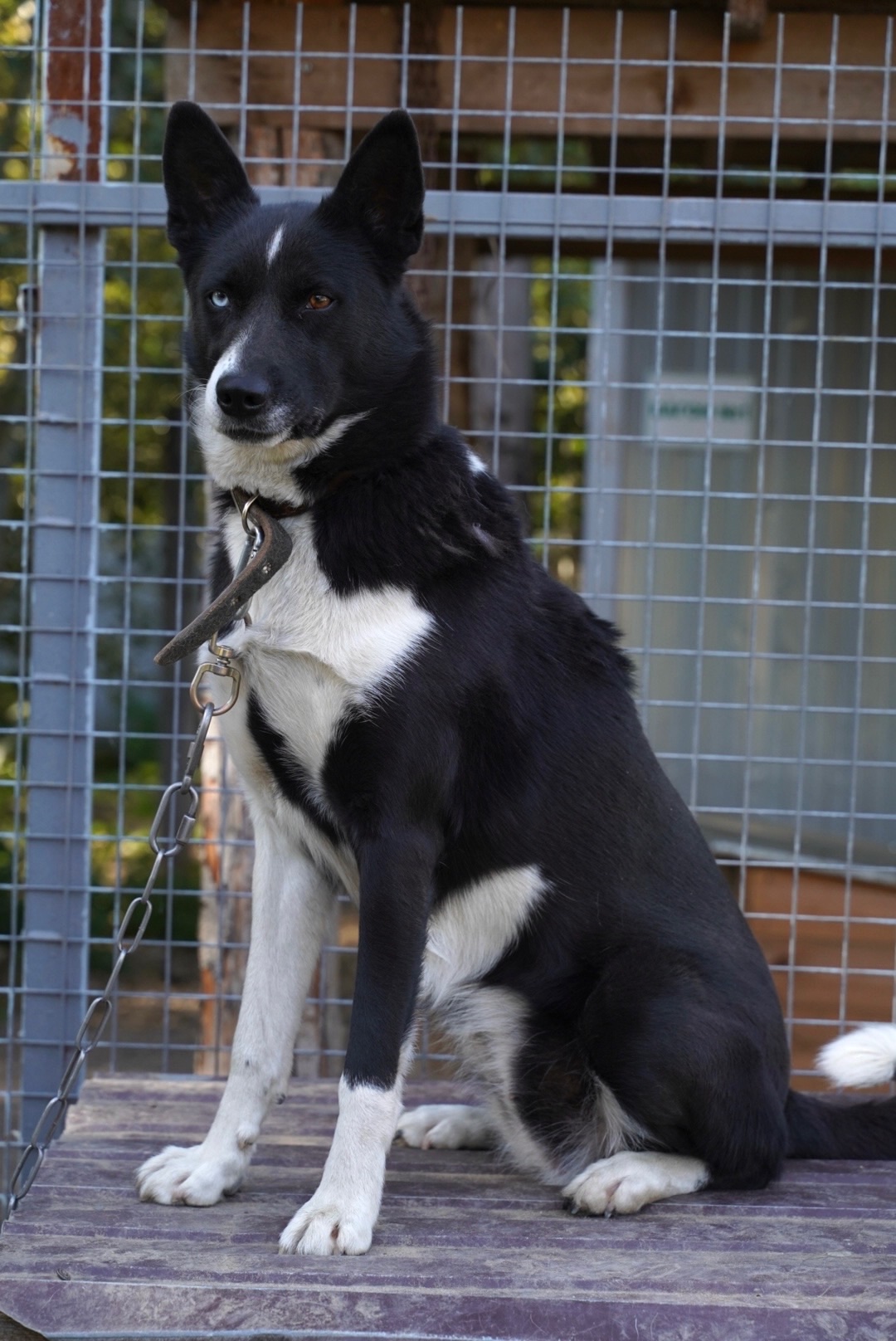 Эта собака — настоящий взрыв энергии и позитива! Она весёлая, озорная и обожает активные игры на свежем воздухе. Готова сопровождать вас во всех приключениях! Прекрасно чувствует себя в утепленной будке даже зимой. Службу несет исправно, не допускает на вверенную территорию «хулюганов», а в душу любимого человека печаль. По отношению к «своим» людям" – очень компанейская, ласковая, добрая собачка. А вы видели её глаза?! Разноглазая красотка покоряет с первого взгляда! Диана — идеальный компаньон для тех, кто любит активный образ жизни и ищет верного друга. Она прекрасно ладит с людьми и будет искренне рада каждому вашему объятию и вниманию.
