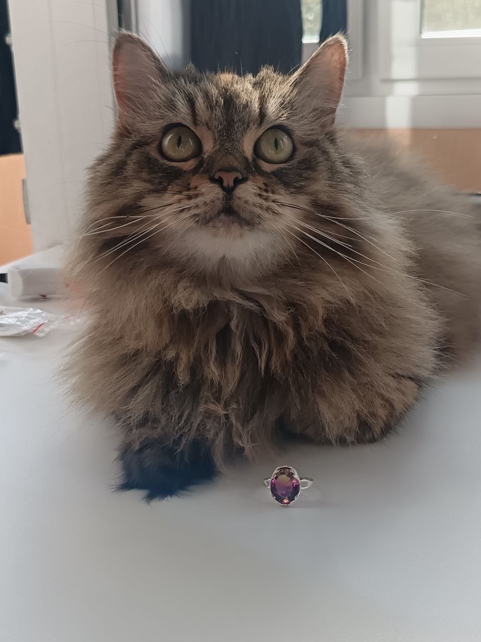 "Маргоша - это общая любимица)) Безумно все её любим. Если увидите, не поверите, что она была разбойница) Очень ласковая, скучает когда на работе. Любит в деревню ездить. Любит коробочки и сумки"