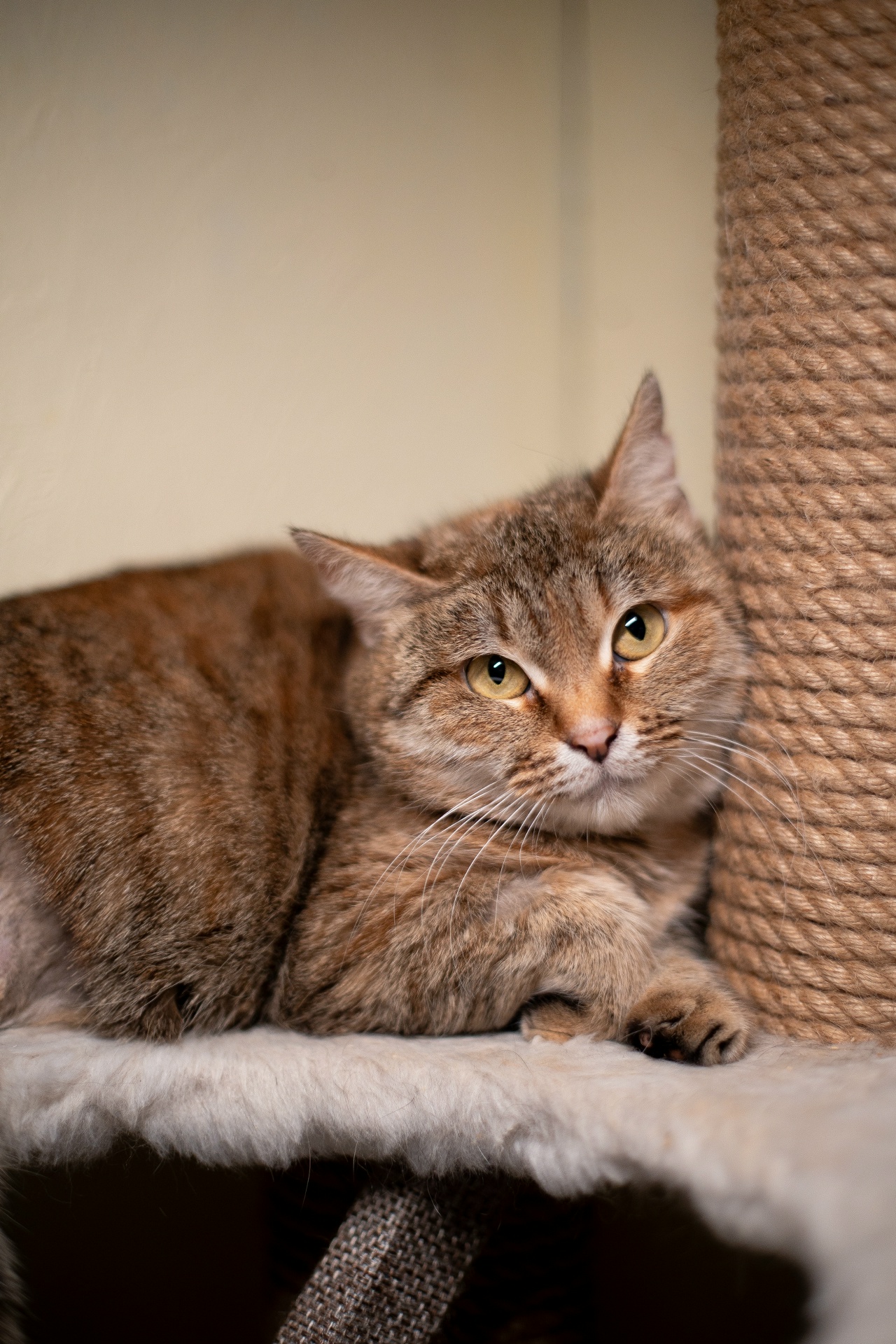 Пельмешка очень застенчивая и недоверчивая дама, но стоит подарить ей немного ласки , как она начинает таять. Киса после полученных травм в основном ведёт лежачий образ жизни, как настоящий пельмень .