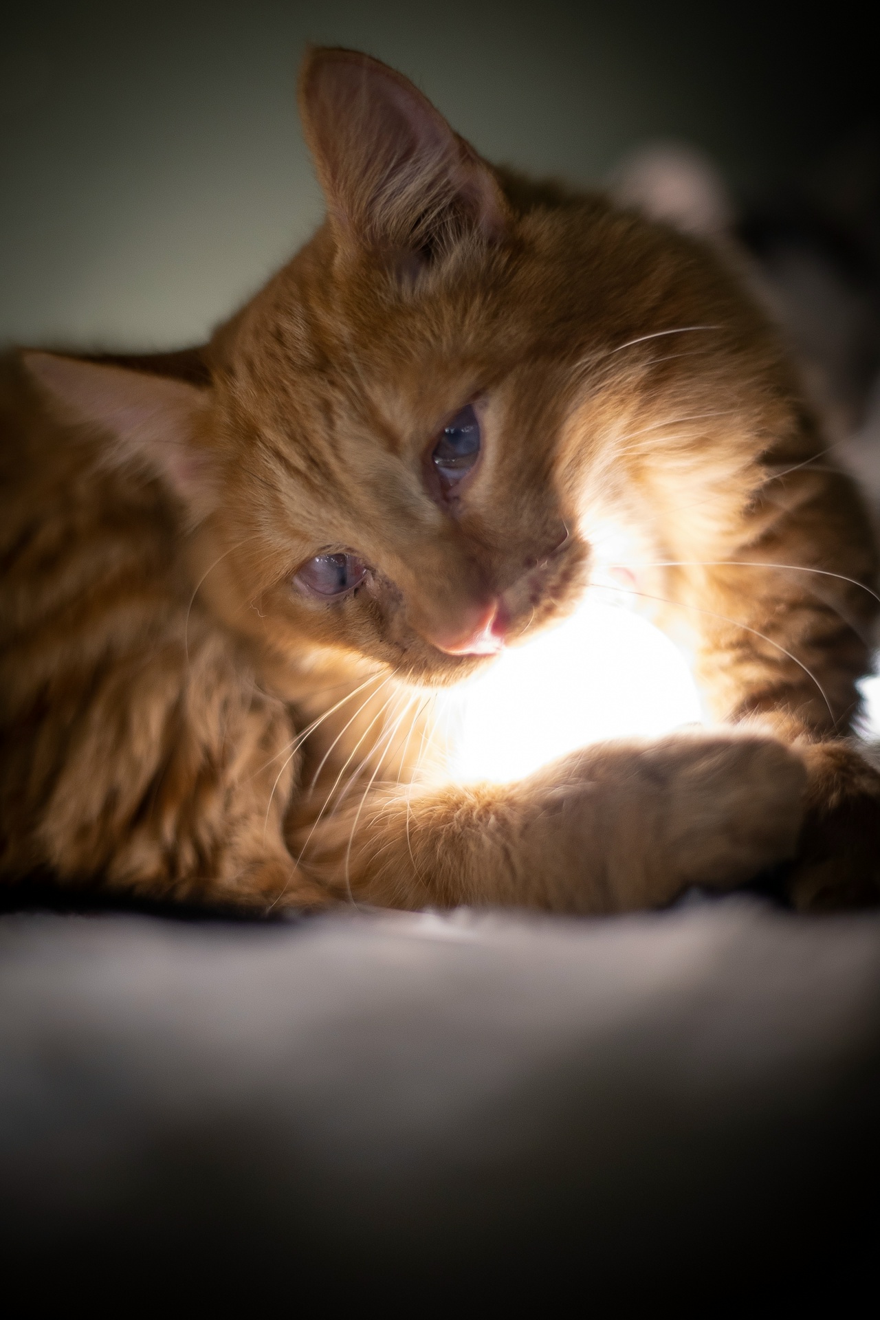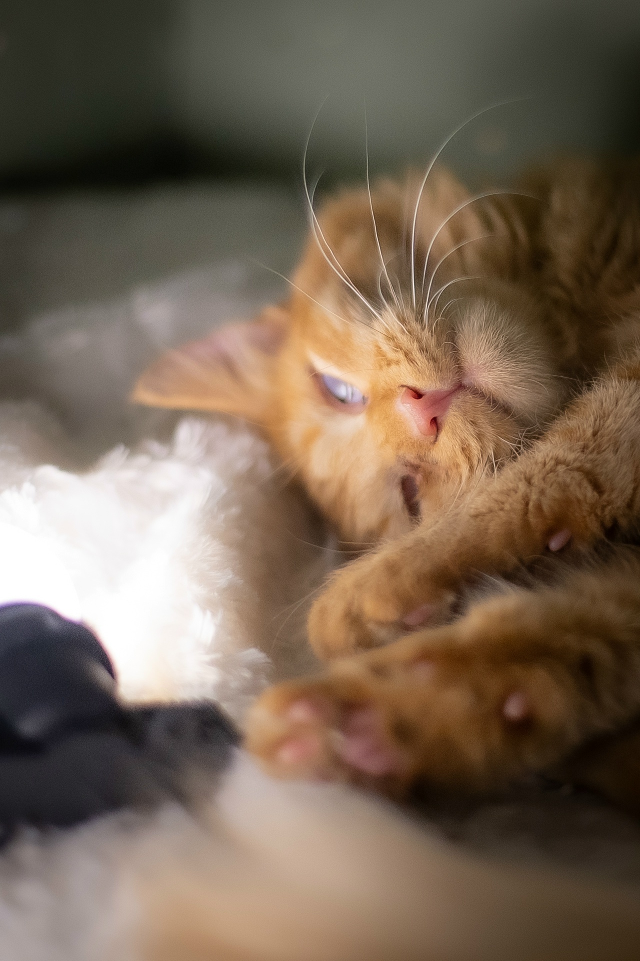 Наш рыжий котёнок Уизли особенный — зрение у него повреждено безвозвратно, он различает только свет и тени. Несмотря на это, он активный, хорошо чувствует себя среди других кошек, играет и быстро ориентируется в знакомом пространстве.